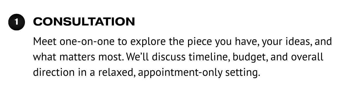 Each project is guided personally from consultation through completion, ensuring a consistent, thoughtful experience from start to finish.