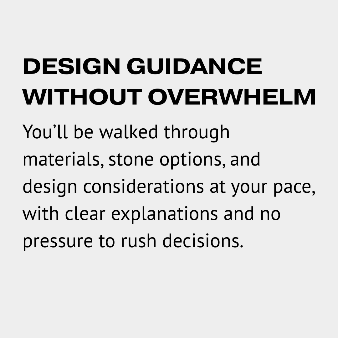 One-on-one consultations to explore ideas, stones, and proportions
